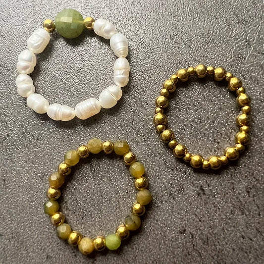 Meilleure venteTrio de Bagues en perles de Jaspe Vert