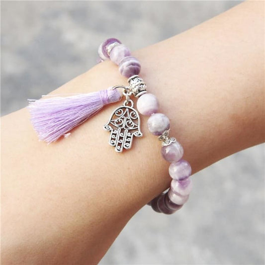 Bracelet 'Main protectrice' en pierre de cristal d'améthyste