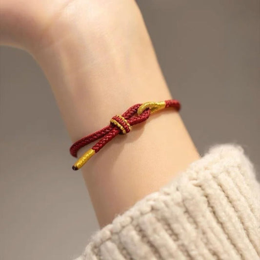 Bracelet rouge et doré en coton
