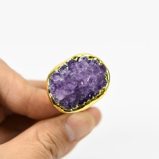 Bague en pierre naturelle plaquée or en améthyste naturelle