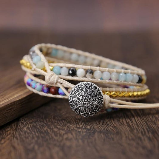 Un bracelet wrap en cristal de jaspe océanique vous rappelle de faire de vous-même une priorité. Vous avez besoin de l'énergie douce et nourricière de ce cristal pour vous aider à ralentir et à prendre du temps pour vous tout au long de la journée.