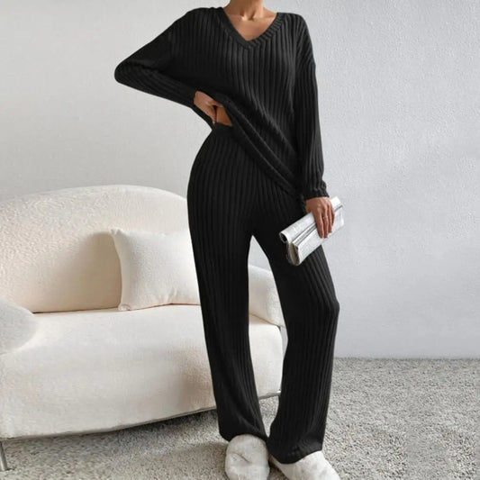 Pyjama polaire deux pièces décontracté avec col en V