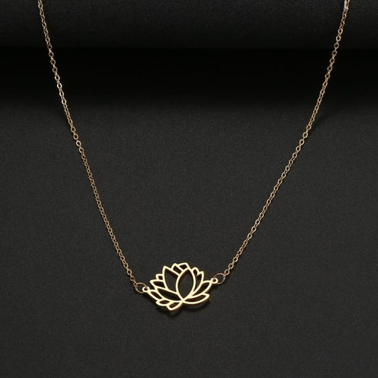 Collier avec pendentif fleur de lotus en acier inoxydable