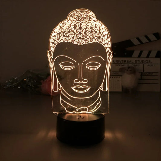 Lampe d'ambiance LED 3D avec visage de bouddha
