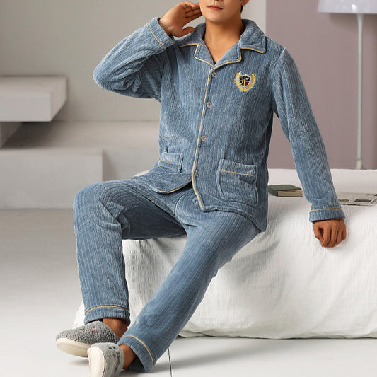 Pyjama polaire deux pièces à col rabattu pour homme
