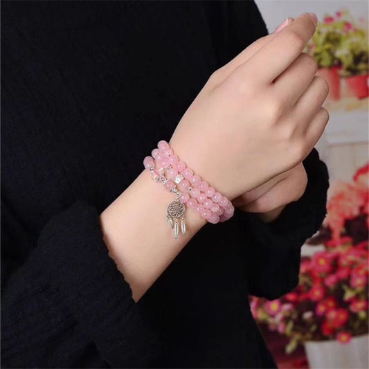 Bracelet mala "Dream Catcher" en Quartz Rose